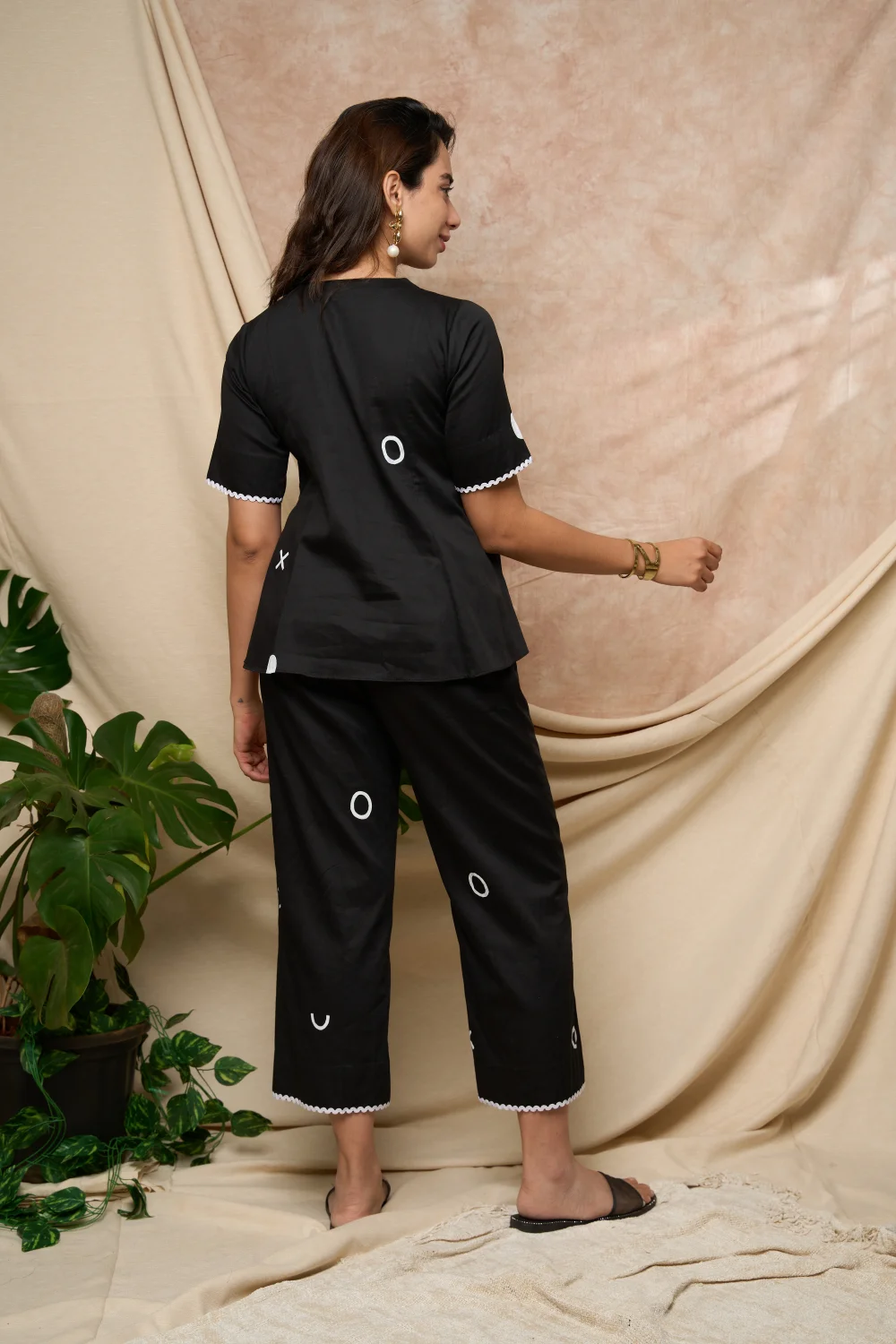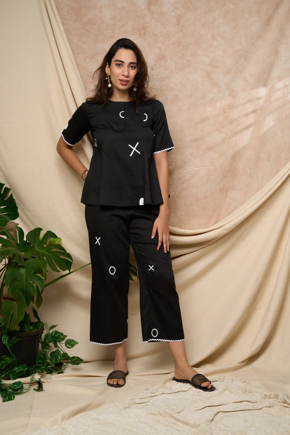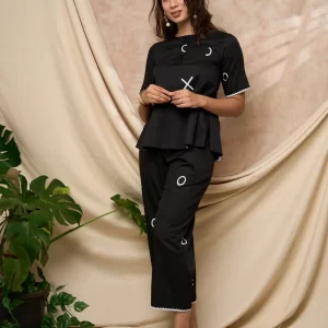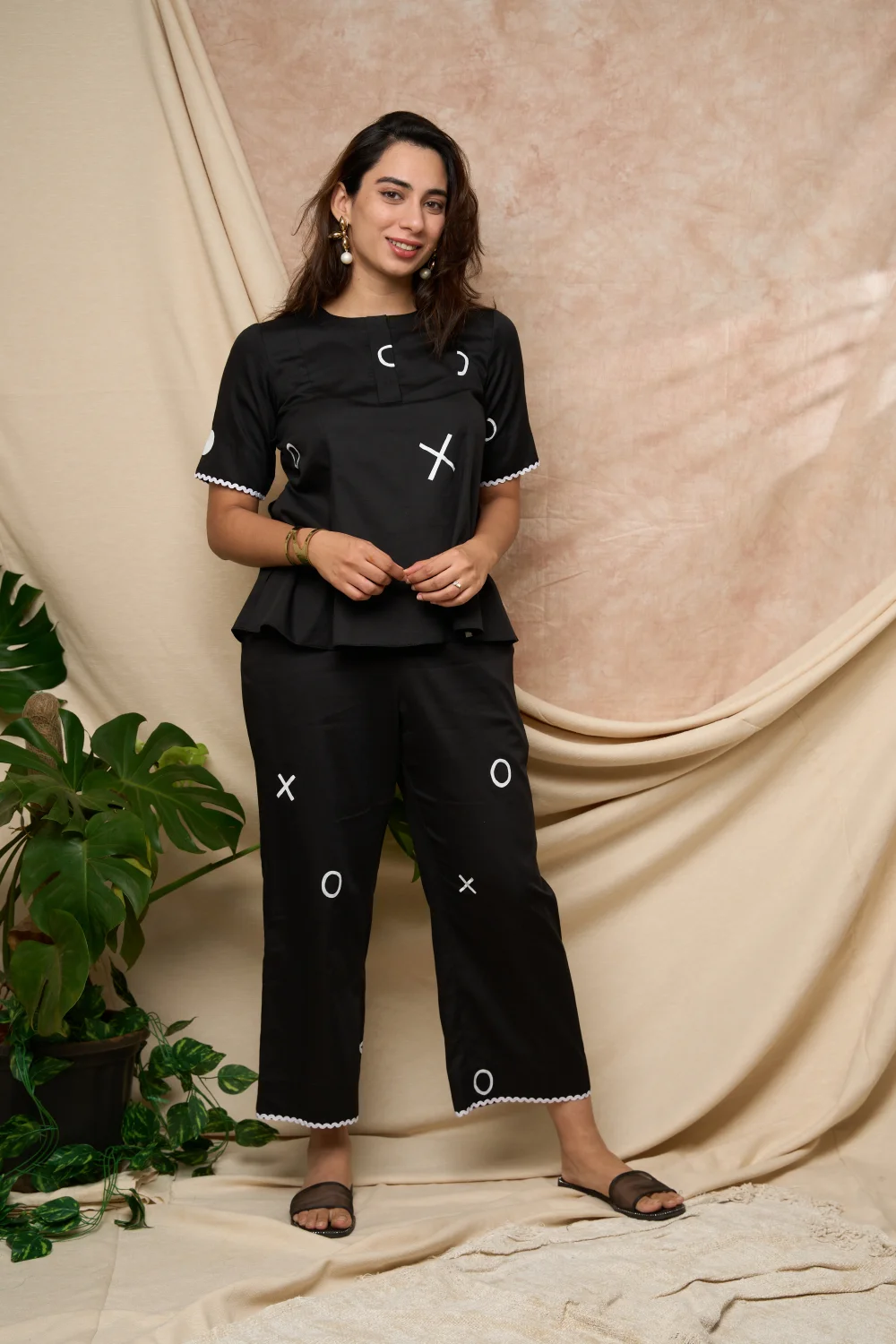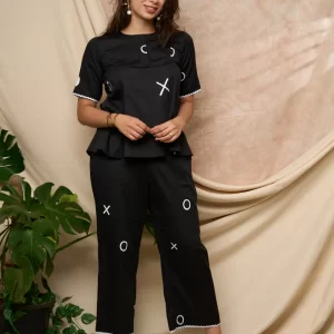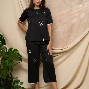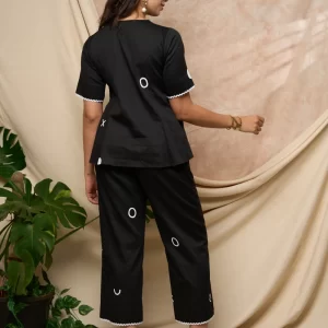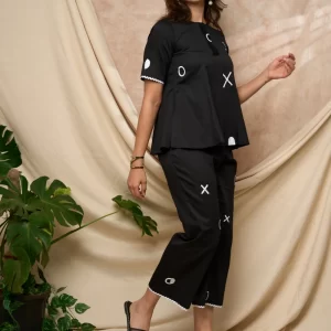 Mocha Shirt and Pant with Triangle Embroidery Co-ord Set.