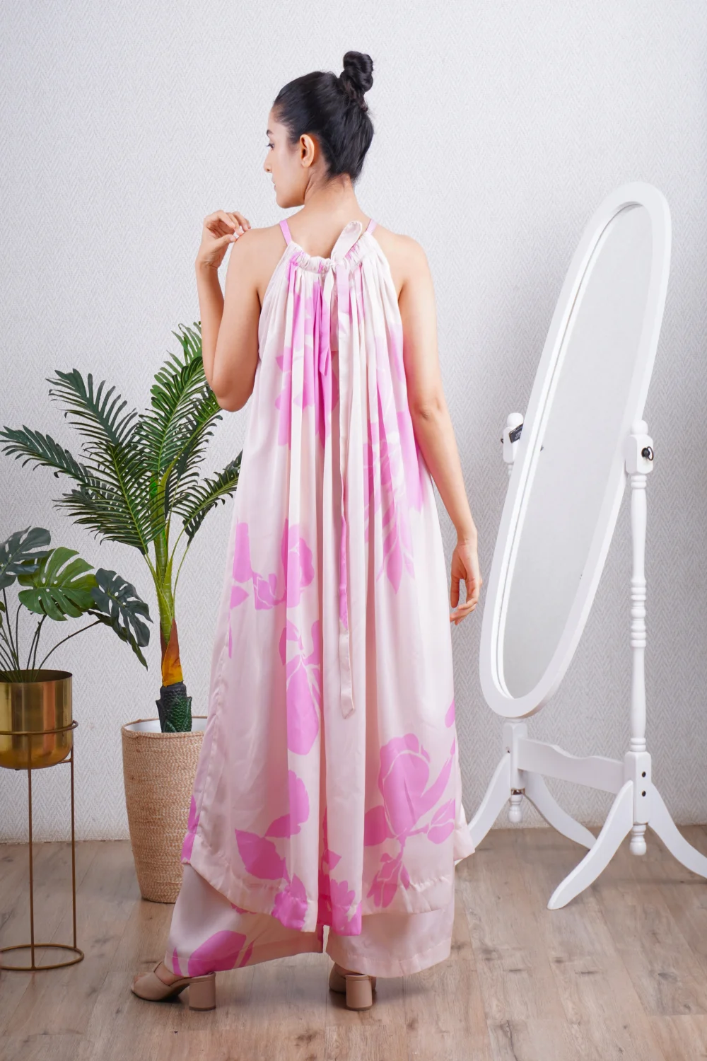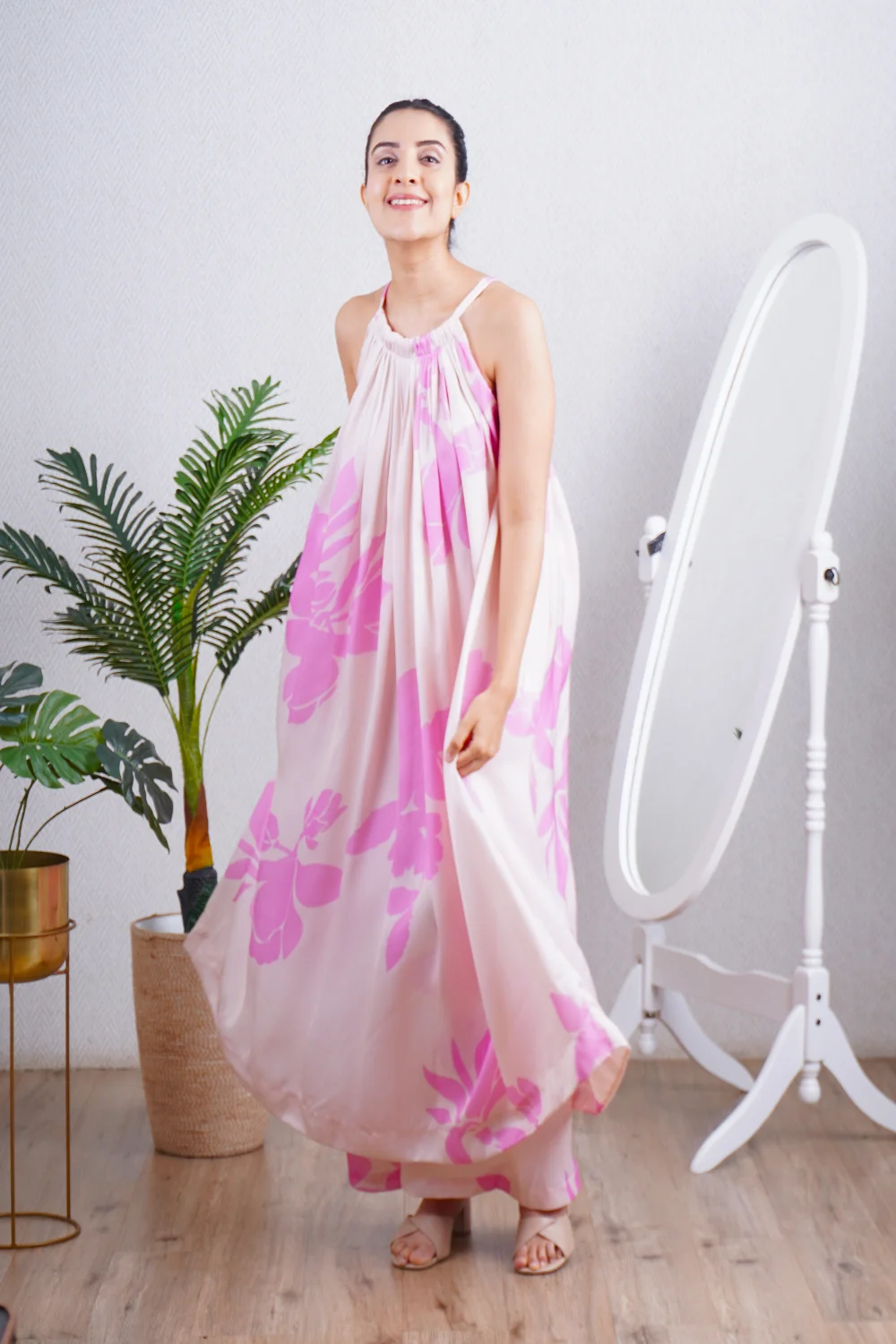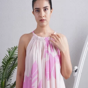 Candy Pink one shoulder kaftan paired with a straight pant, can be worn as a dress also. Super comfortable and breathable that you can live in this throughout the day.