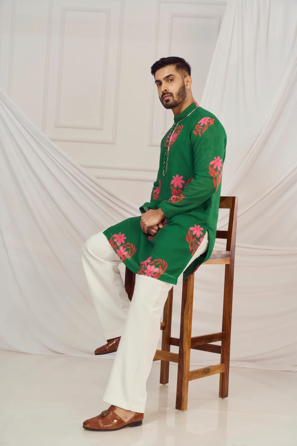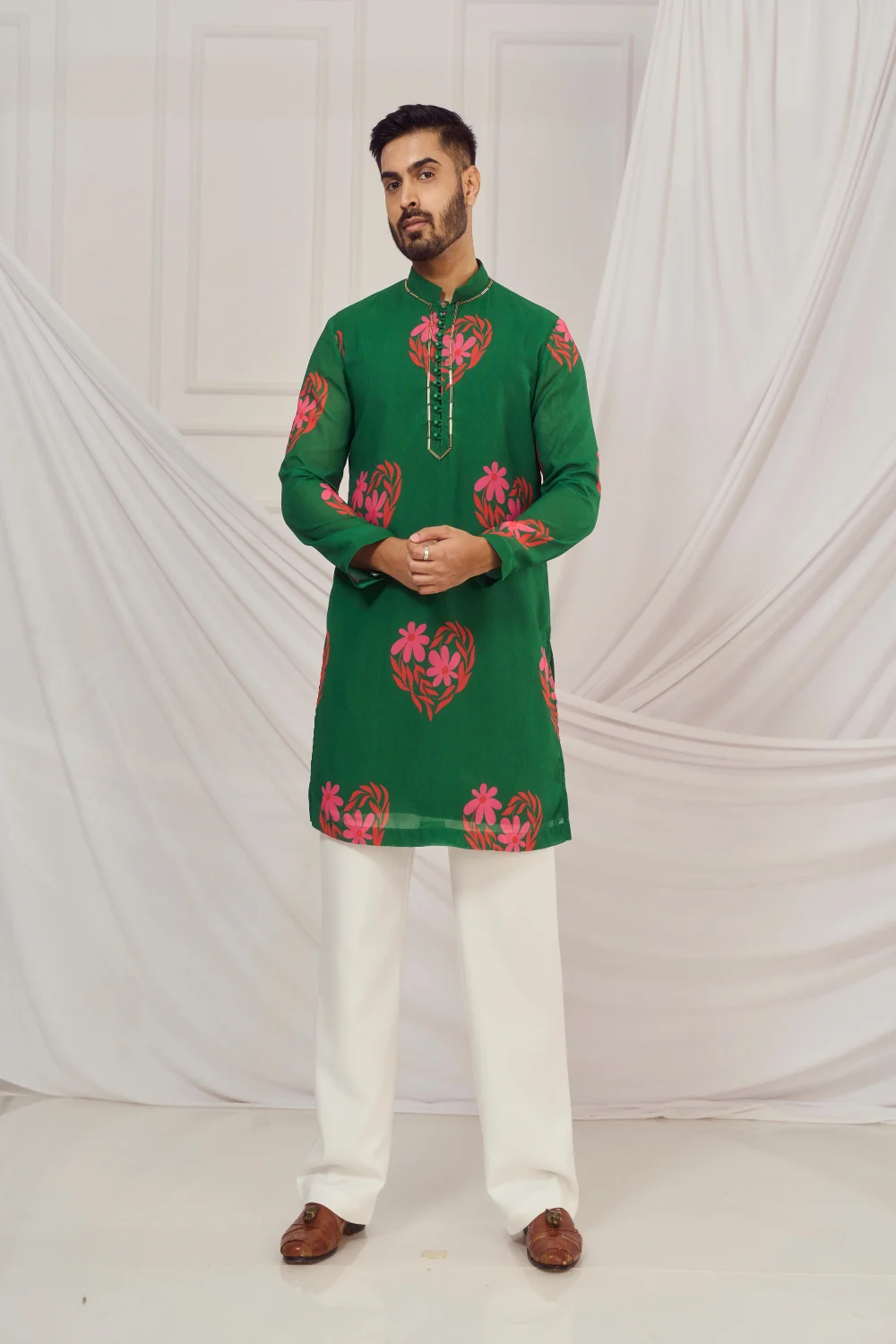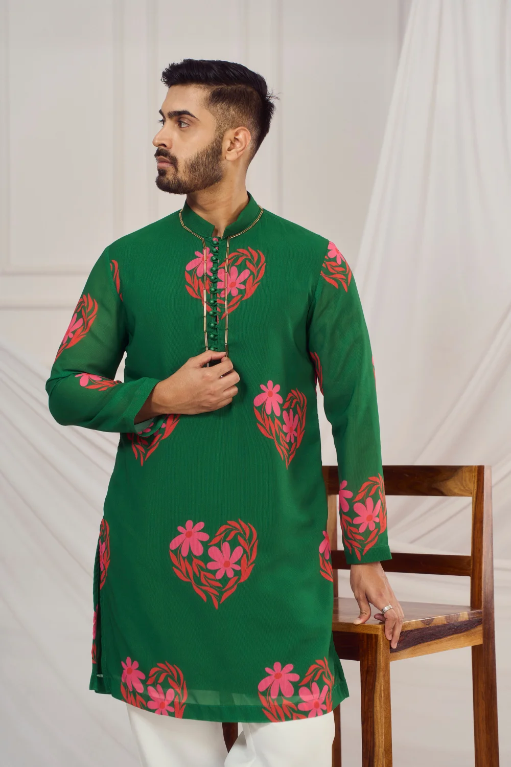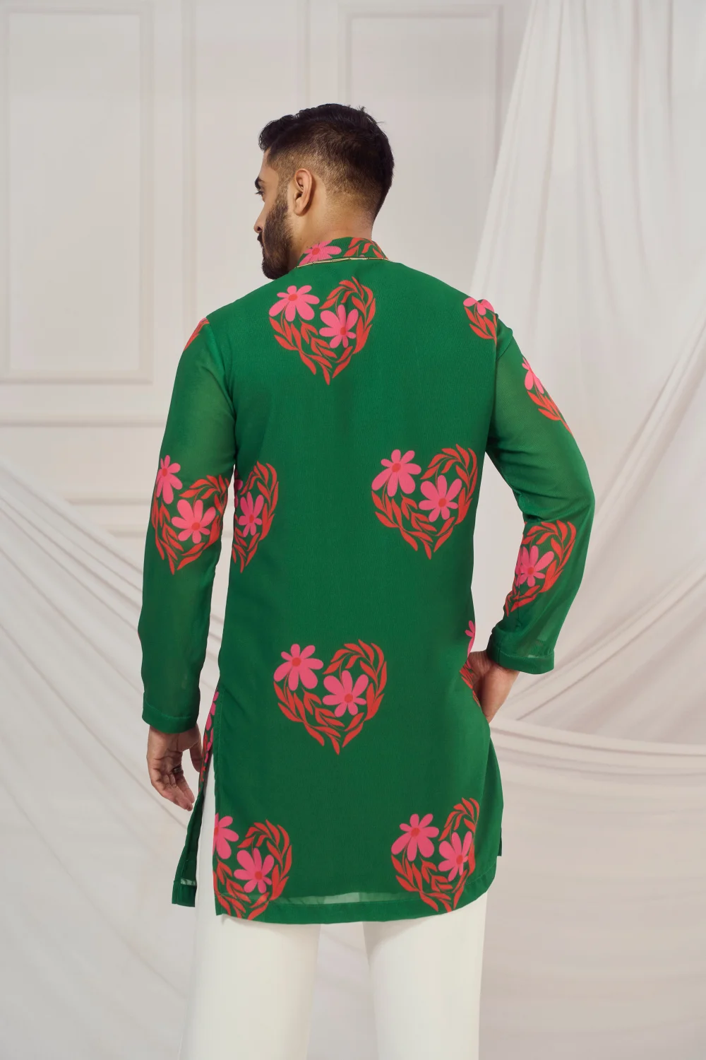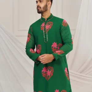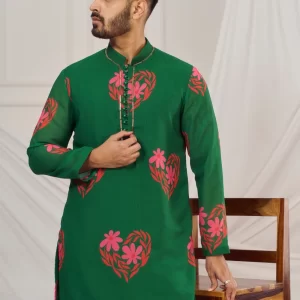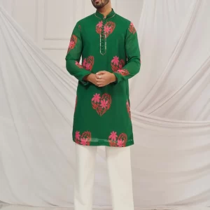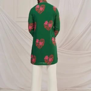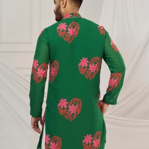 Dark Green floral heart print kurta.