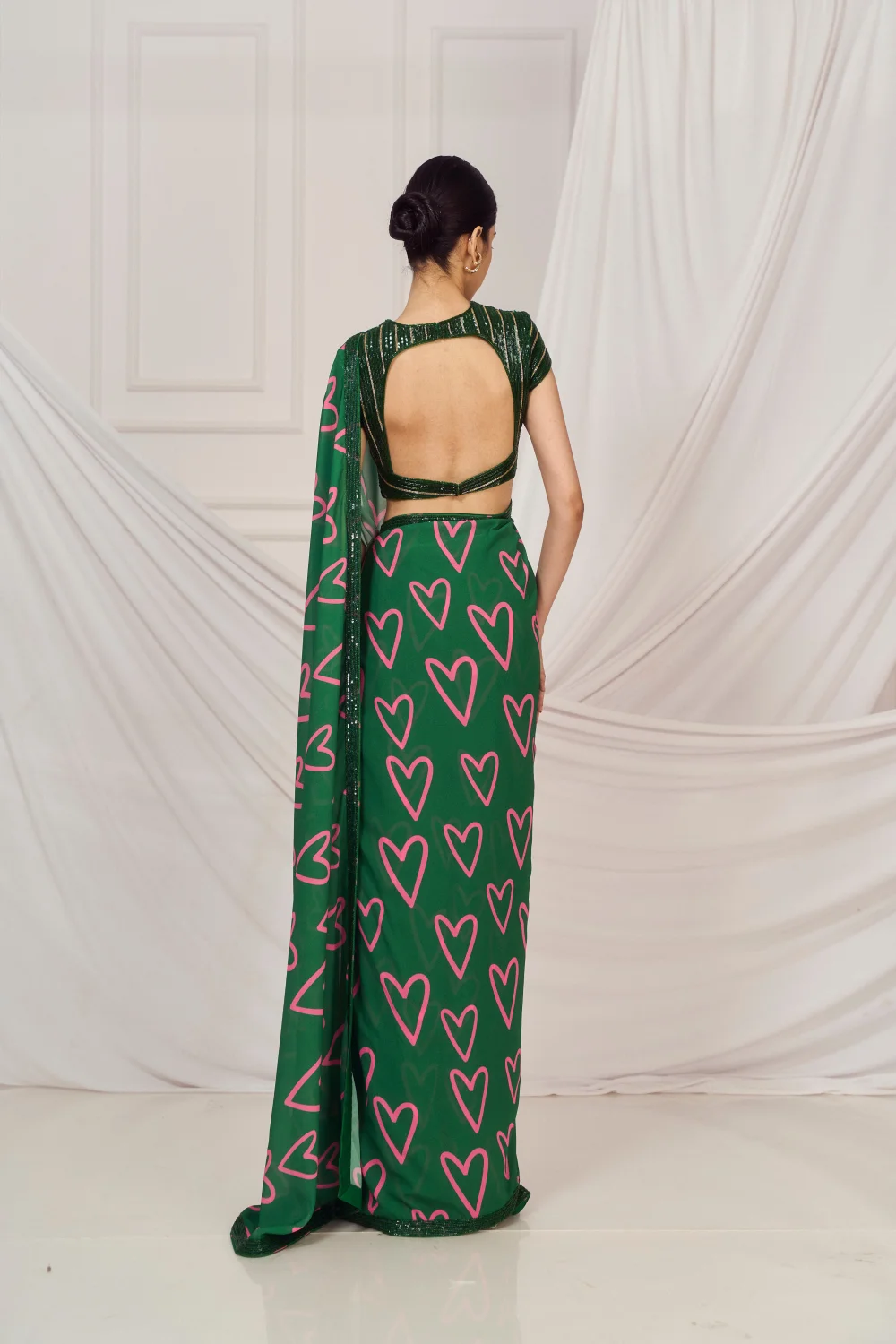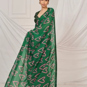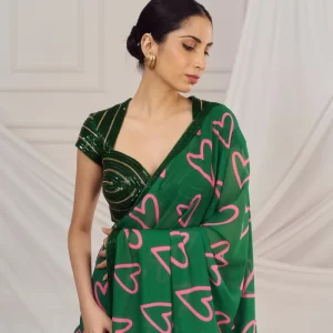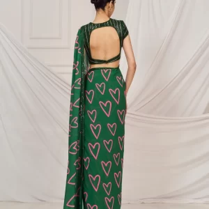 Dark green heart embroidered sari
