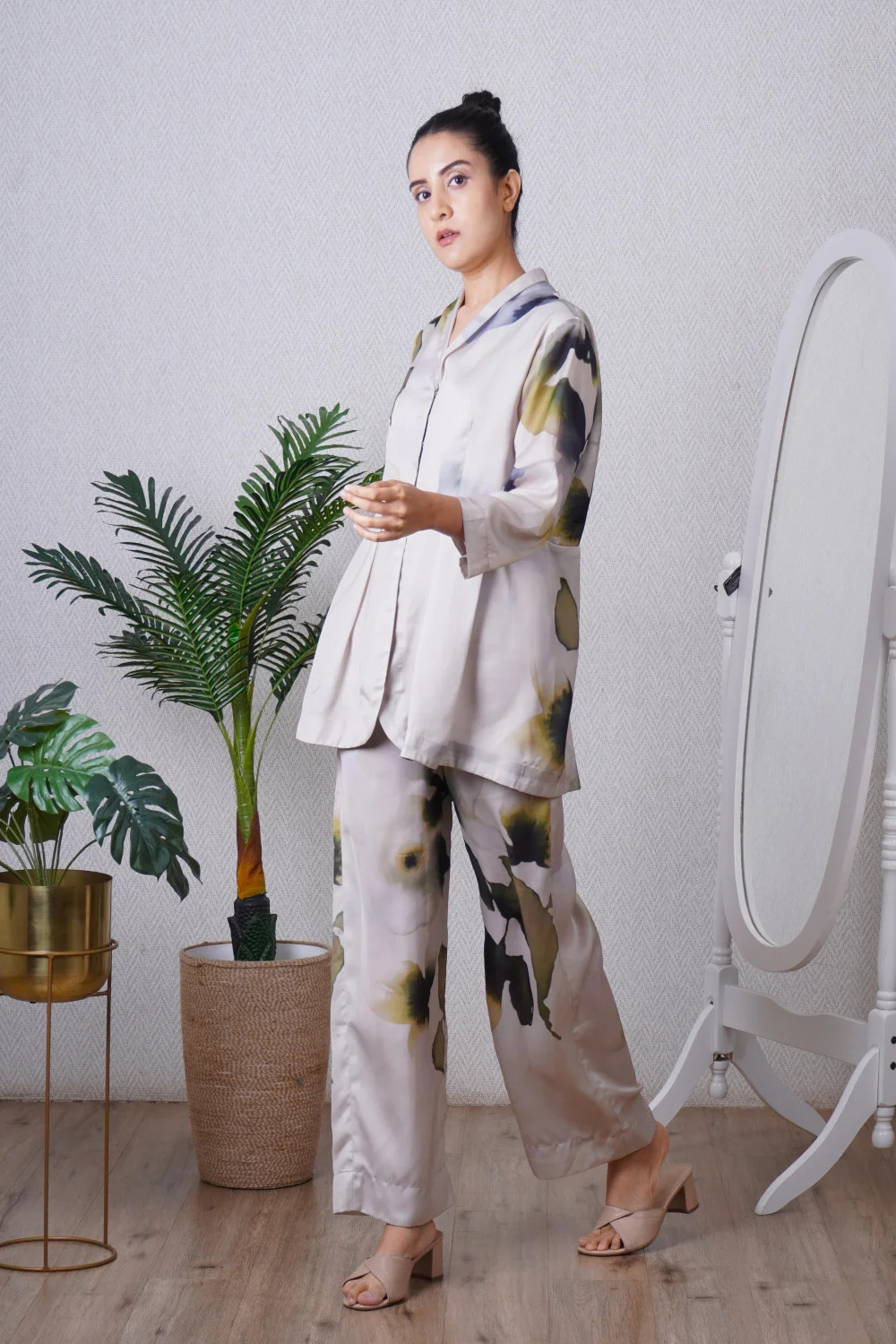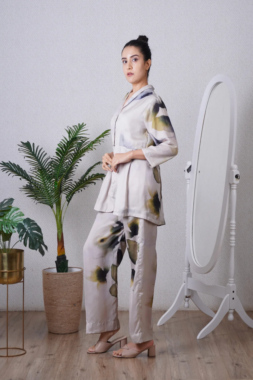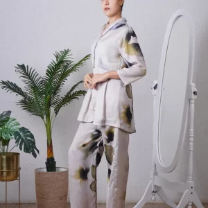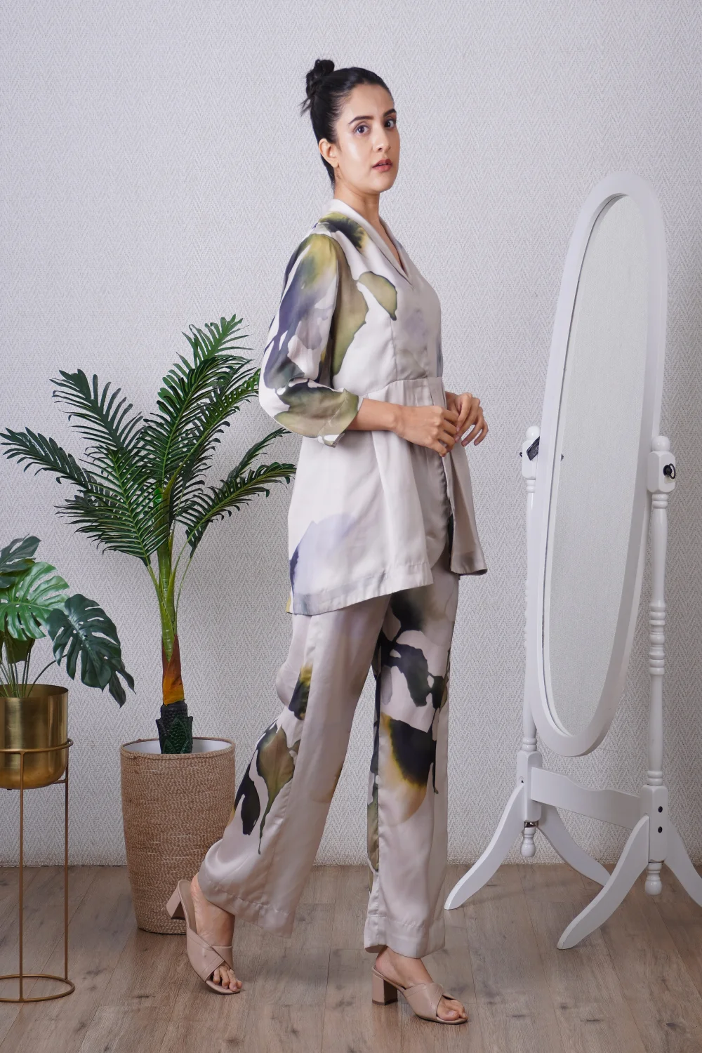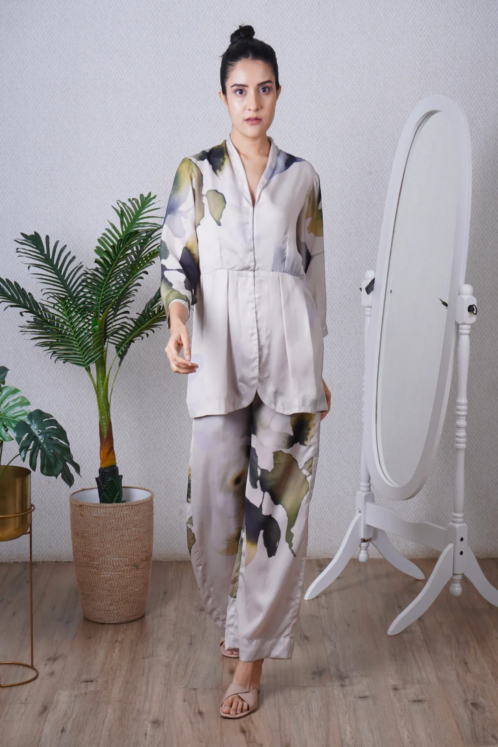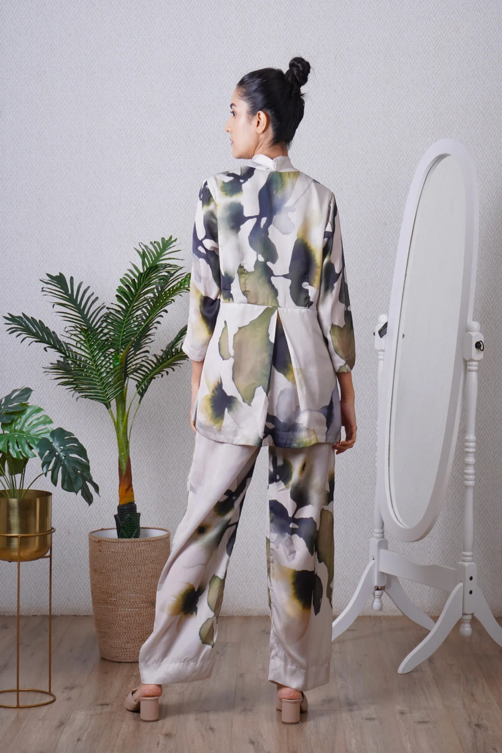 Green blazer paired with a straight pant, can be worn as a dress also. Super comfortable and breathable that you can live in this throughout the day.