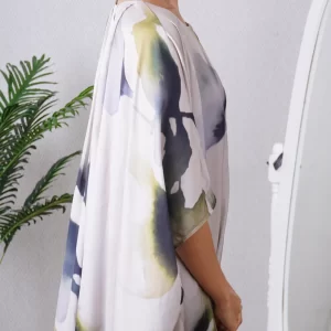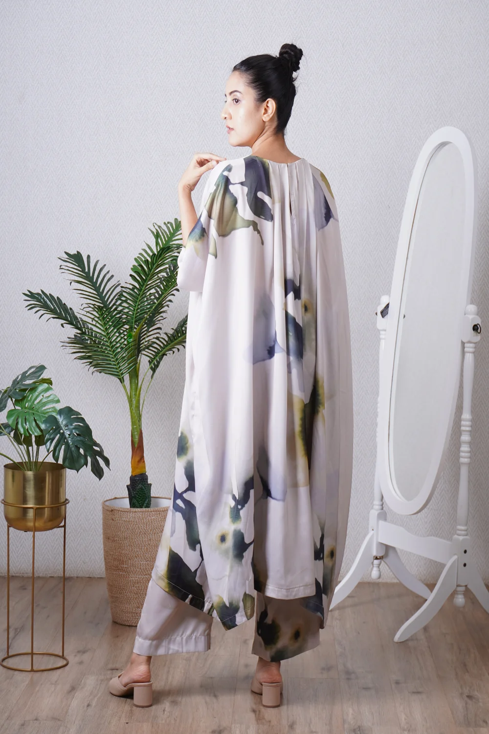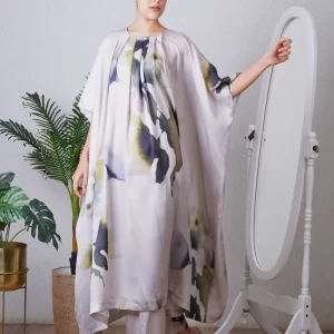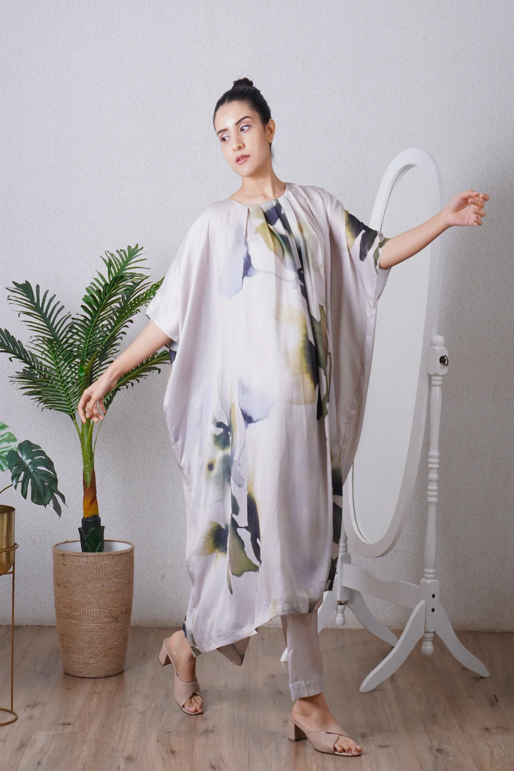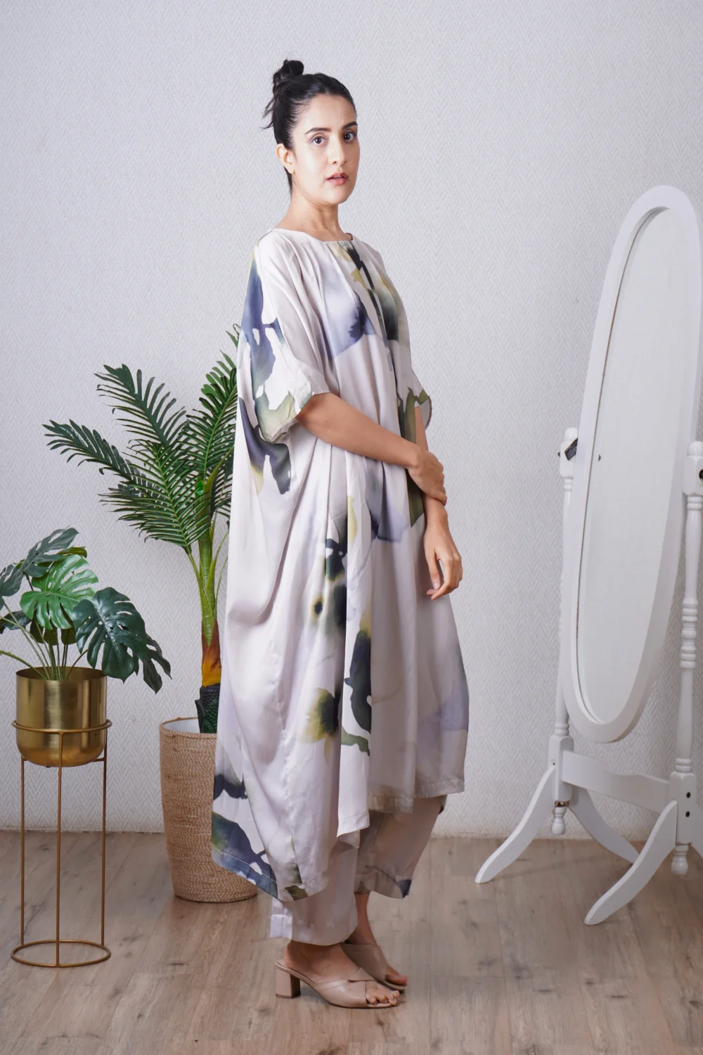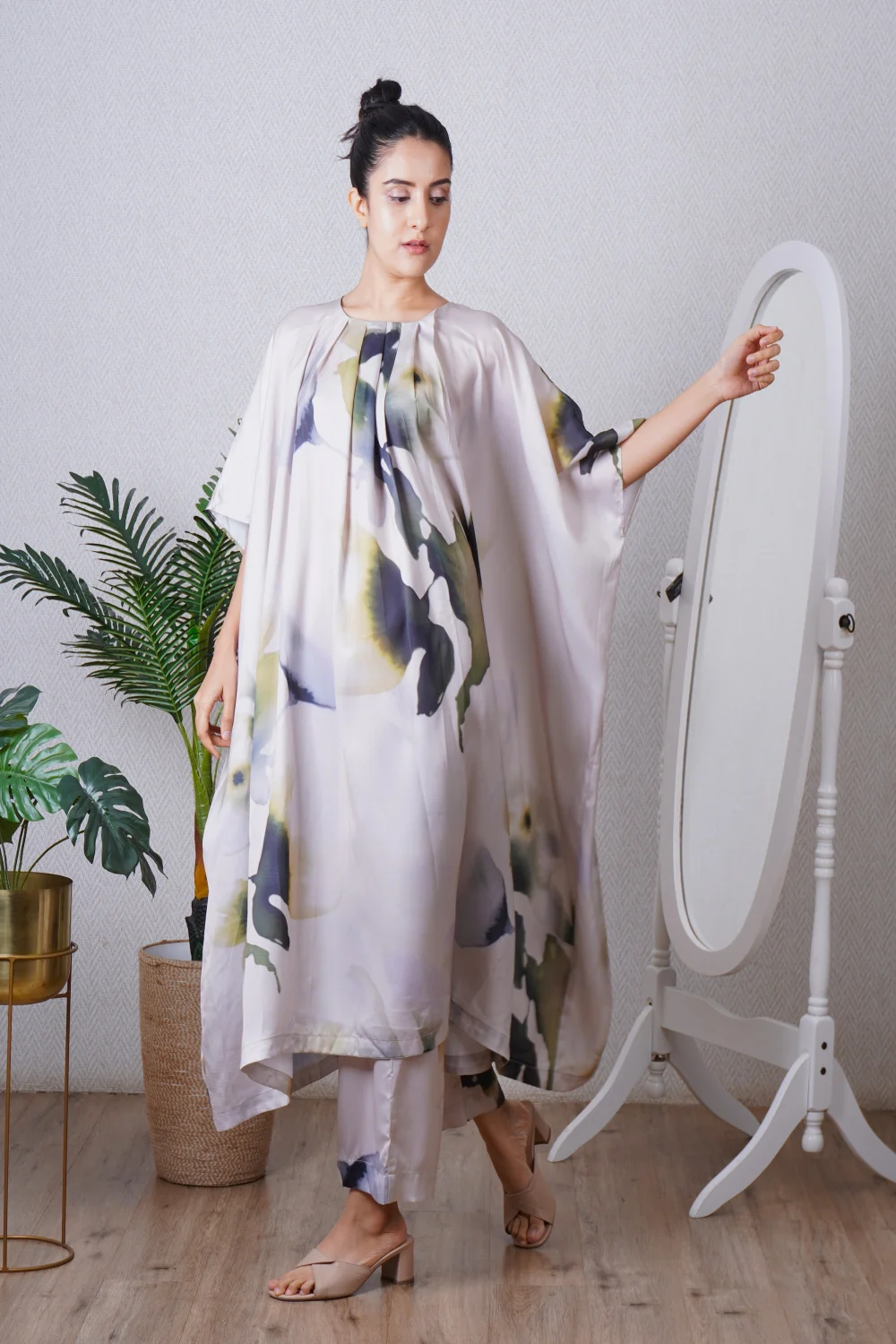 Green pleated kaftan paired with a straight pant, can be worn as a dress also. Super comfortable and breathable that you can live in this throughout the day.