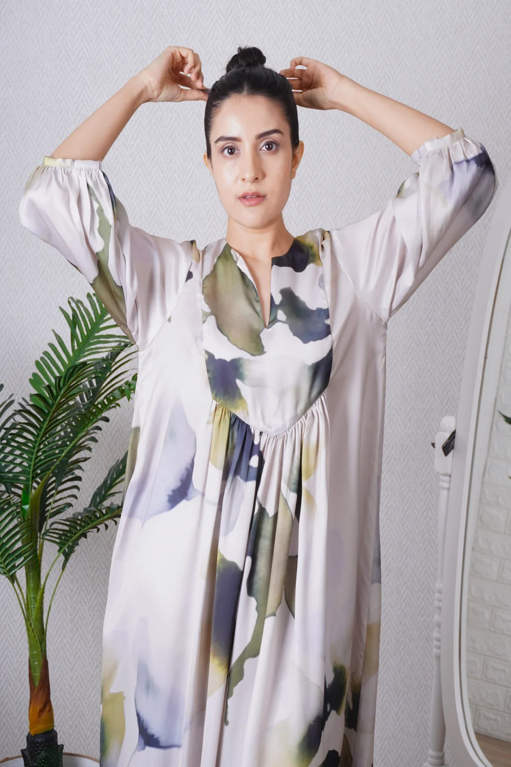Green Yoke tunic paired with a straight pant, can be worn as a dress also. Super comfortable and breathable that you can live in this throughout the day.