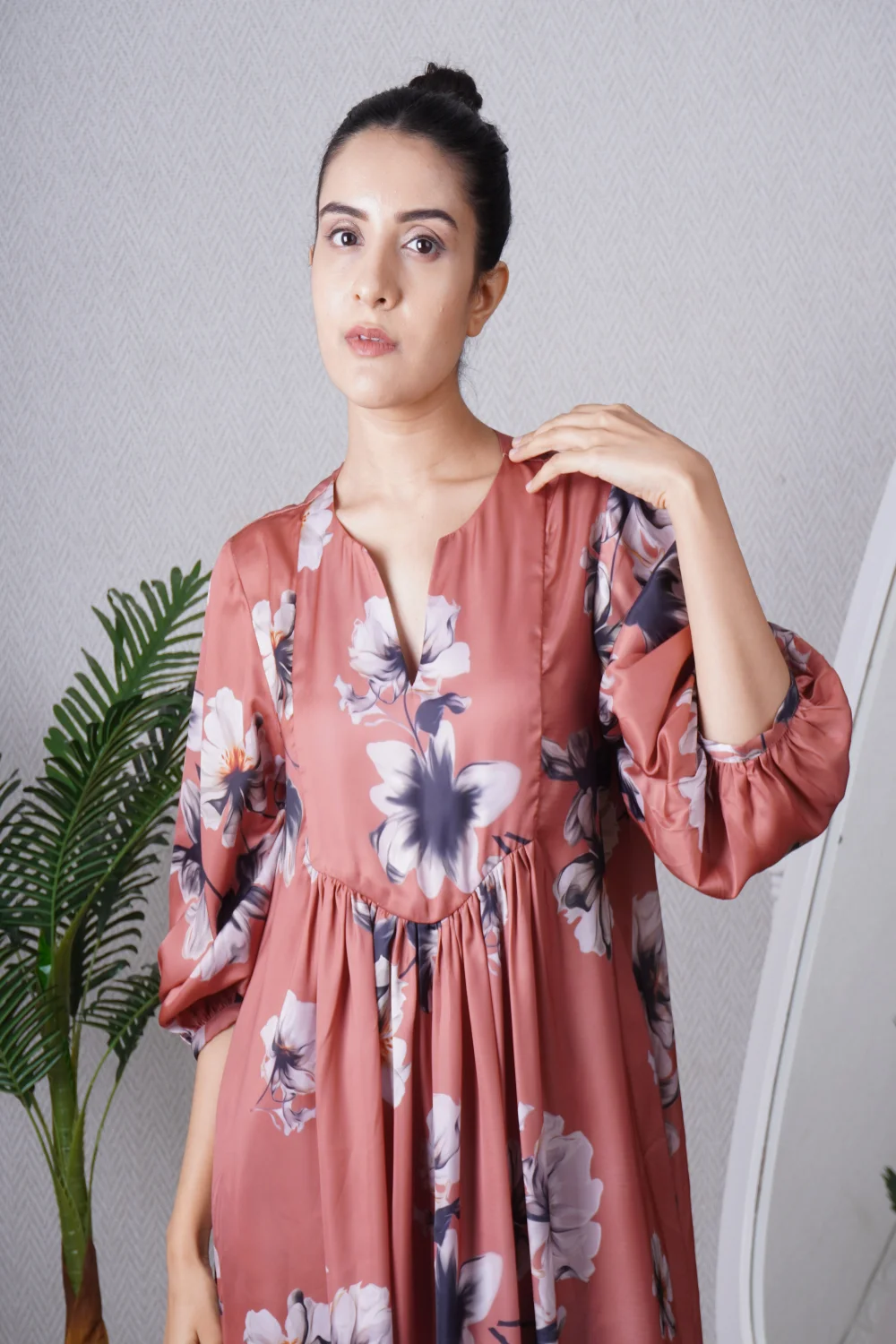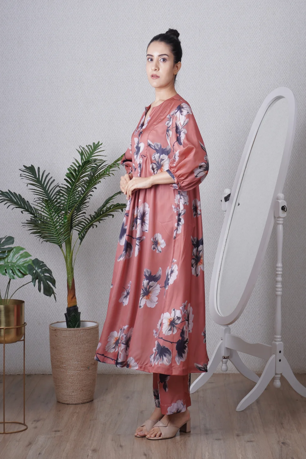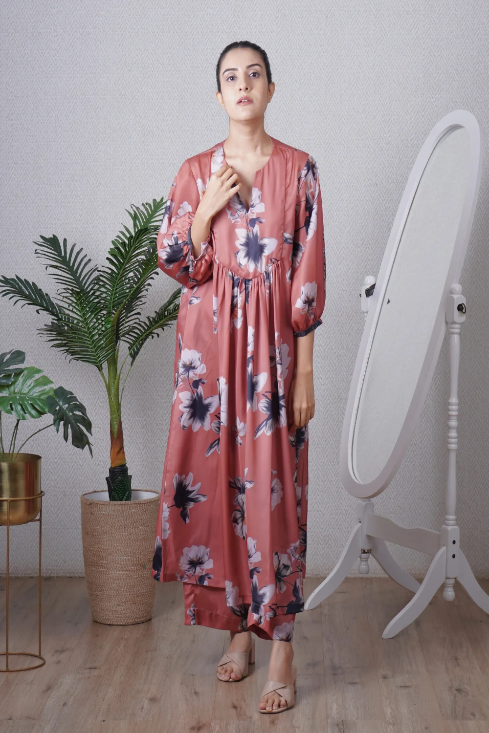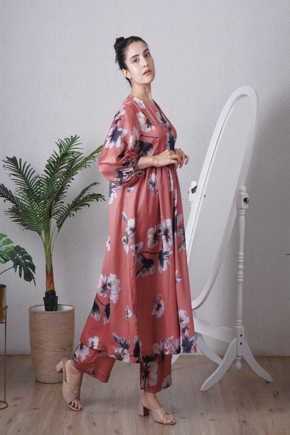 Mocha Yoke tunic paired with a straight pant, can be worn as a dress also. Super comfortable and breathable that you can live in this throughout the day.