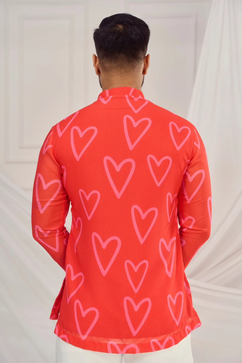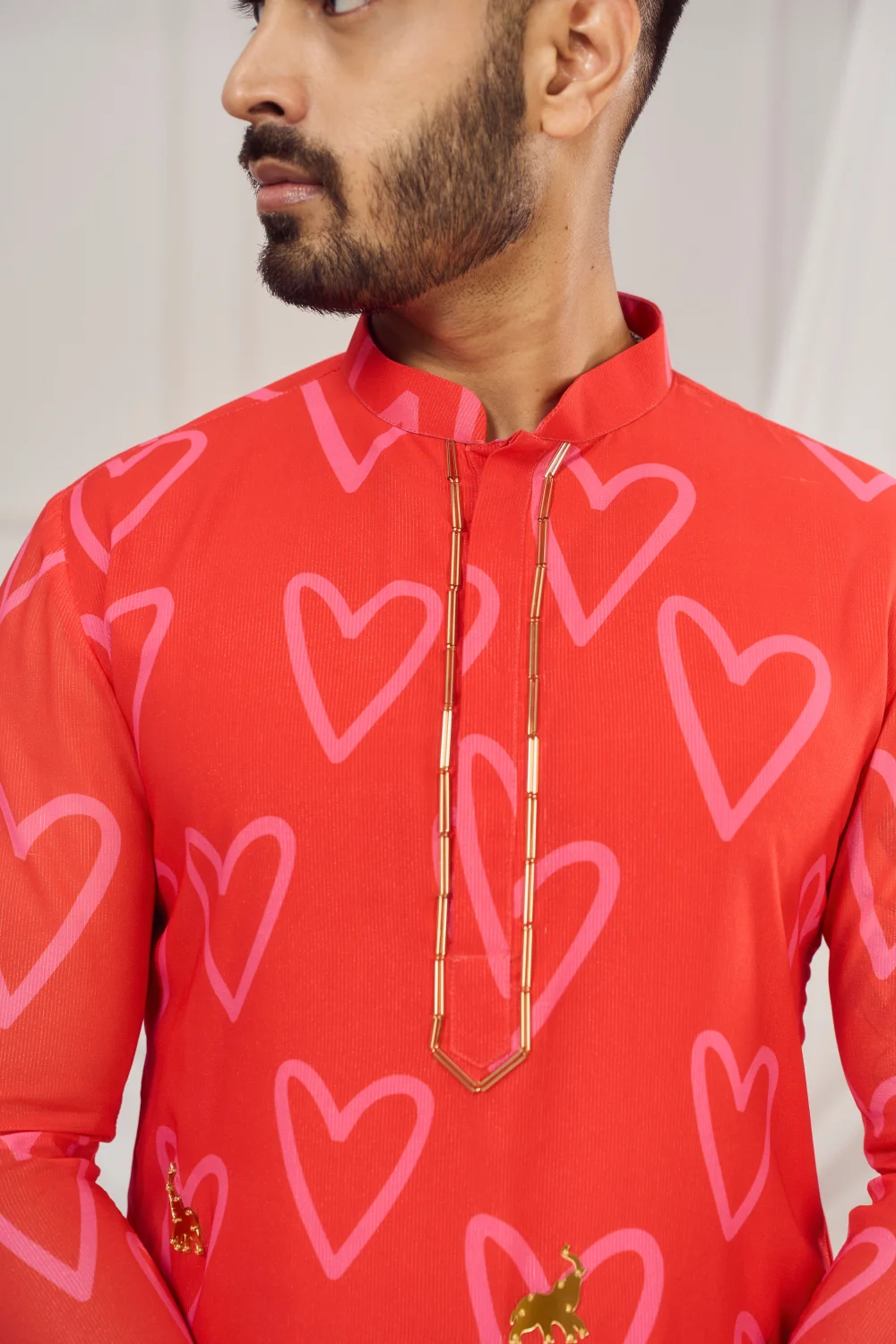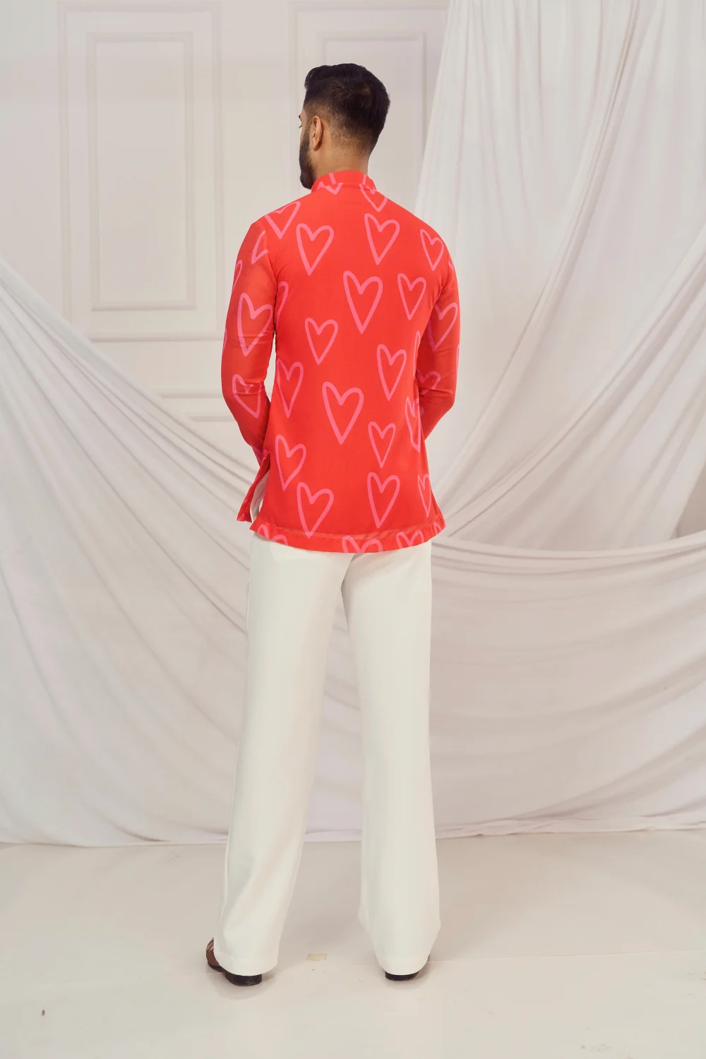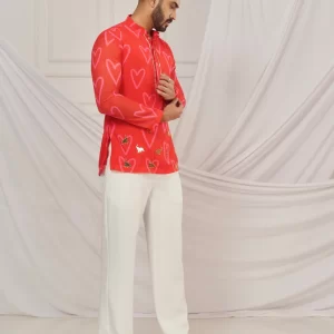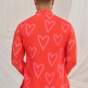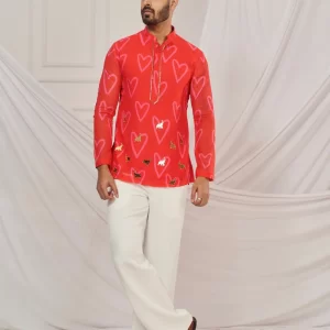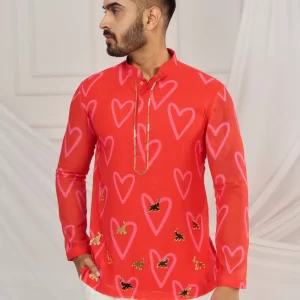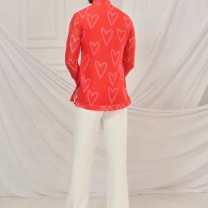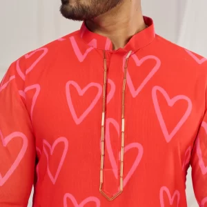 Red heart print kurta.