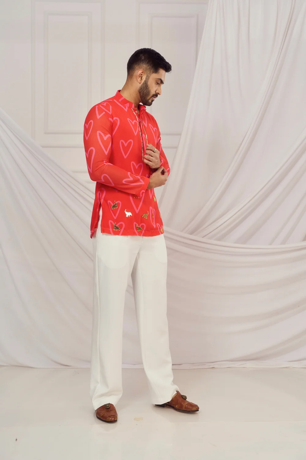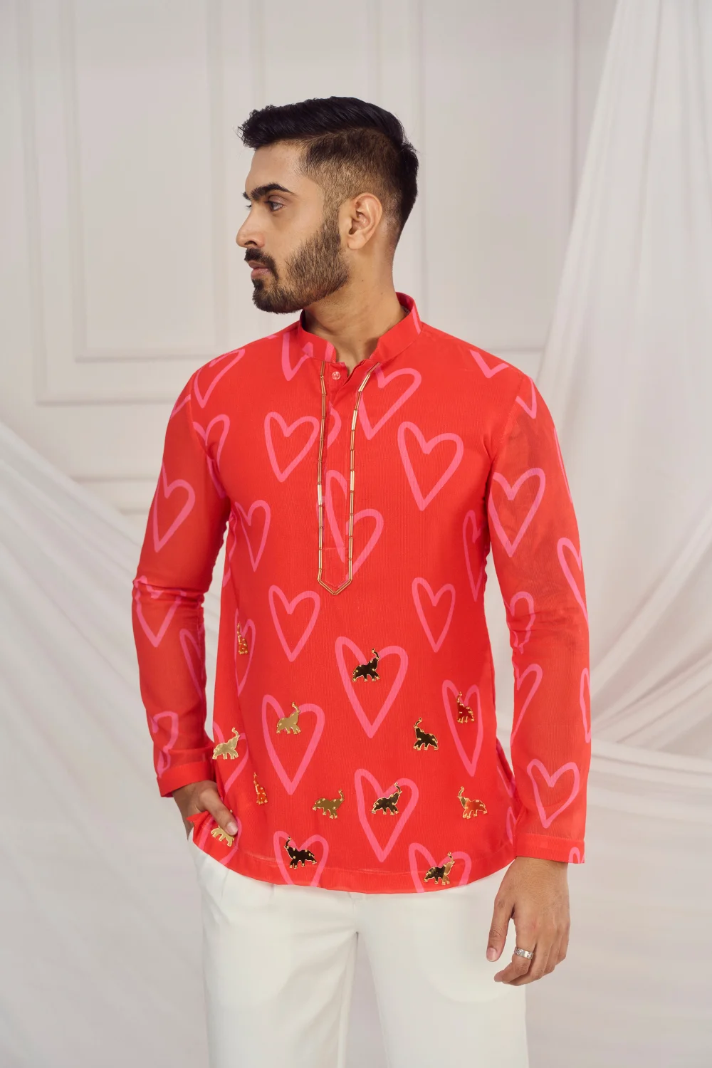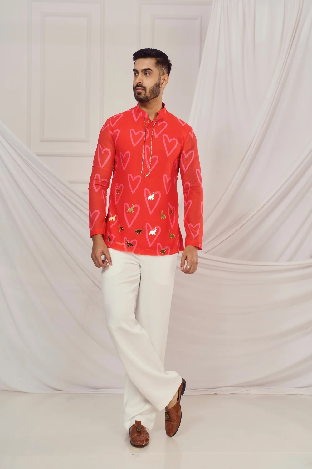 Red heart print kurta.