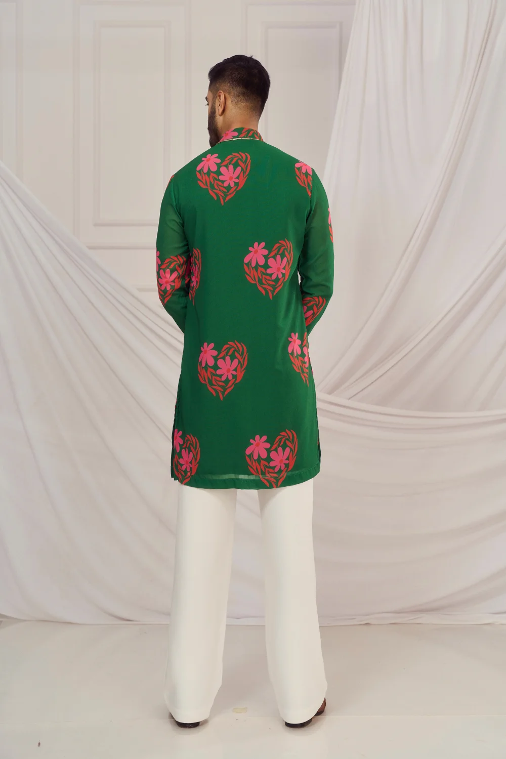 Pink Floral Georgette Printed Sheer Men Kurta
