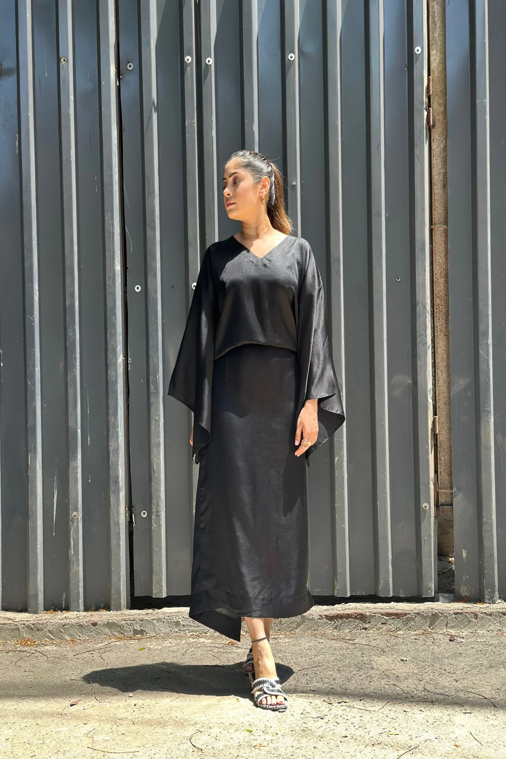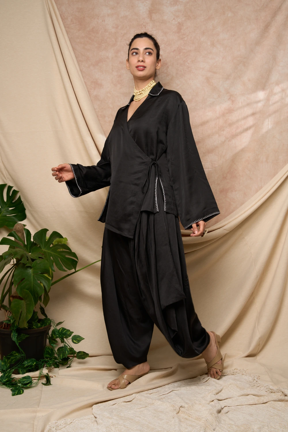 Black Overlap Shirt with Tulip Pant Set.