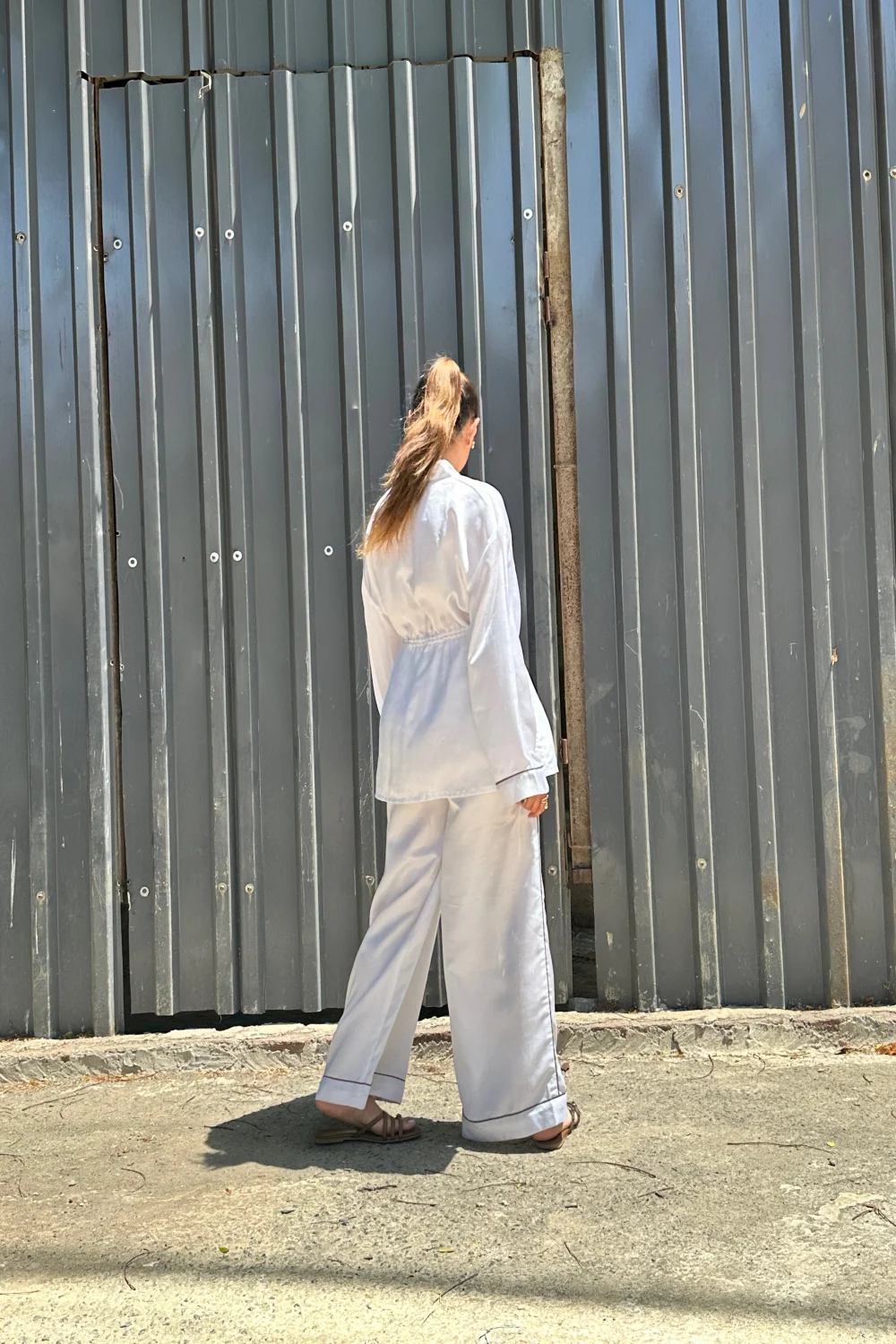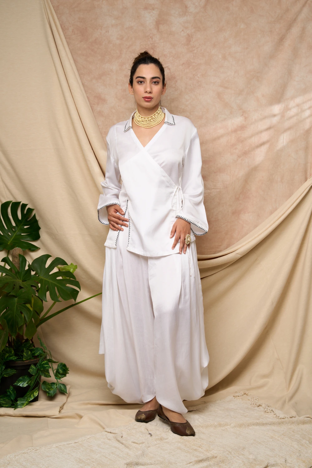 White Overlap Shirt with Tulip Pant Set.
