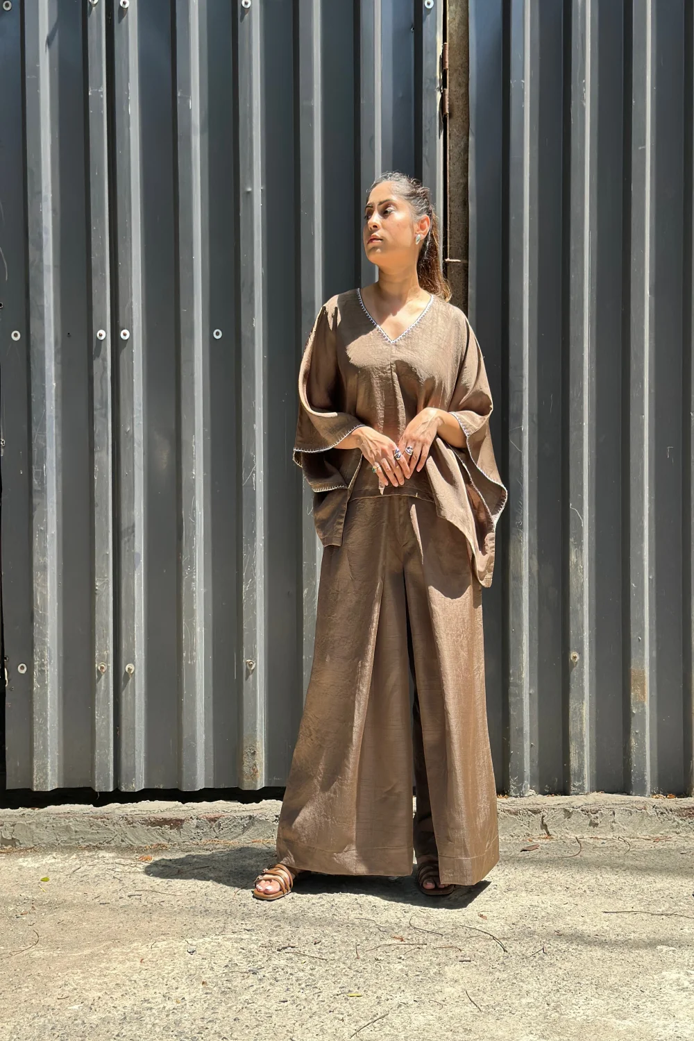 Mocha One Shoulder Kaftan Set