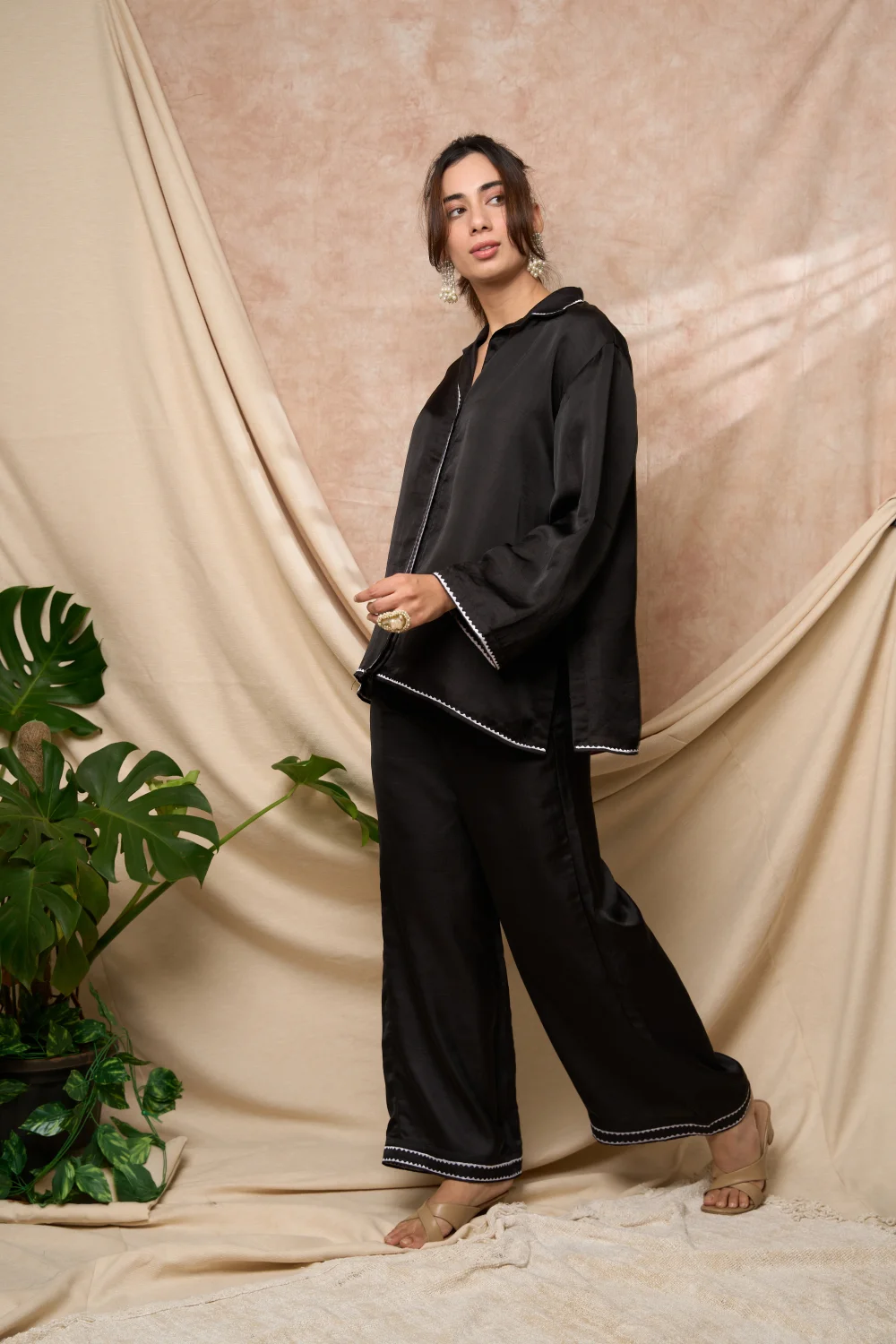 Black Piping Co-ord Set.