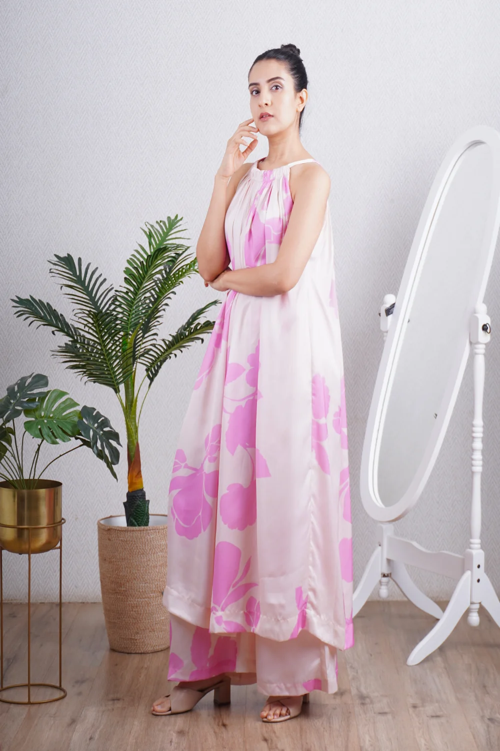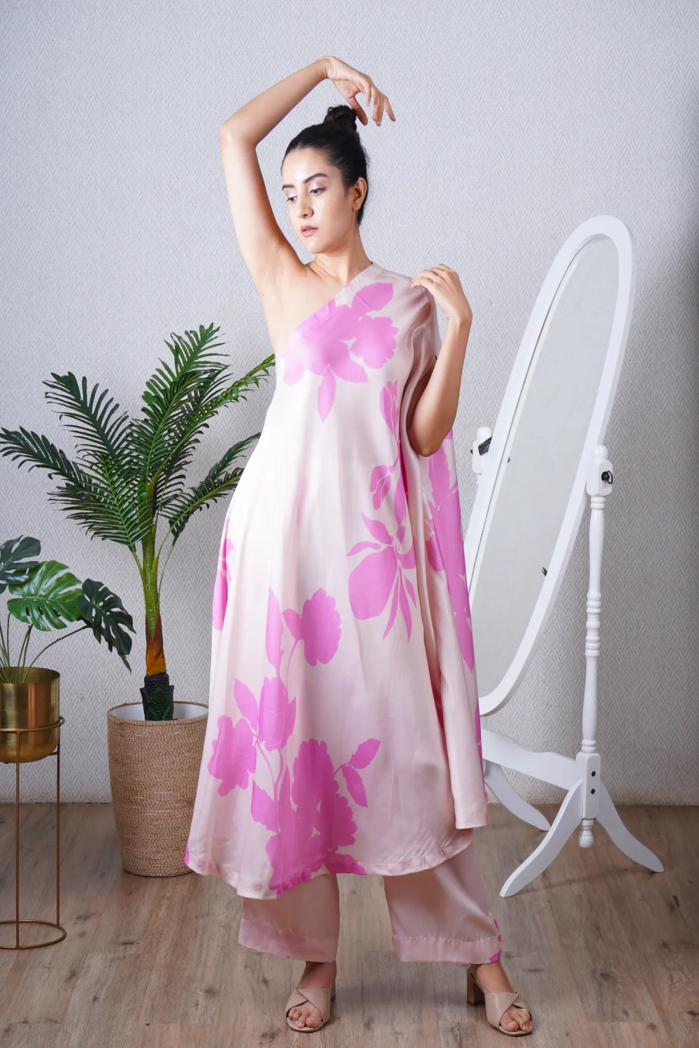 Candy Pink One Shoulder Kaftan Set