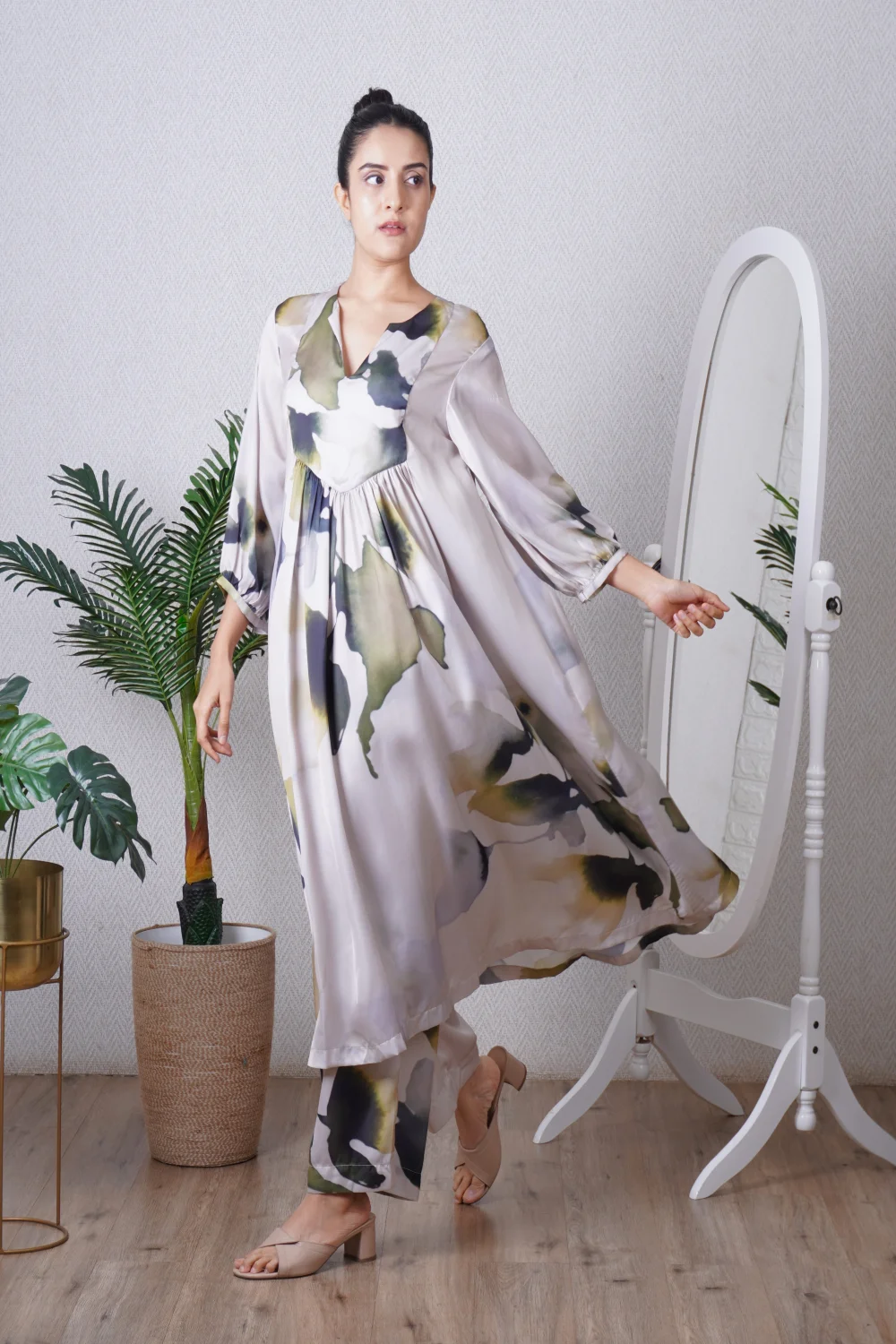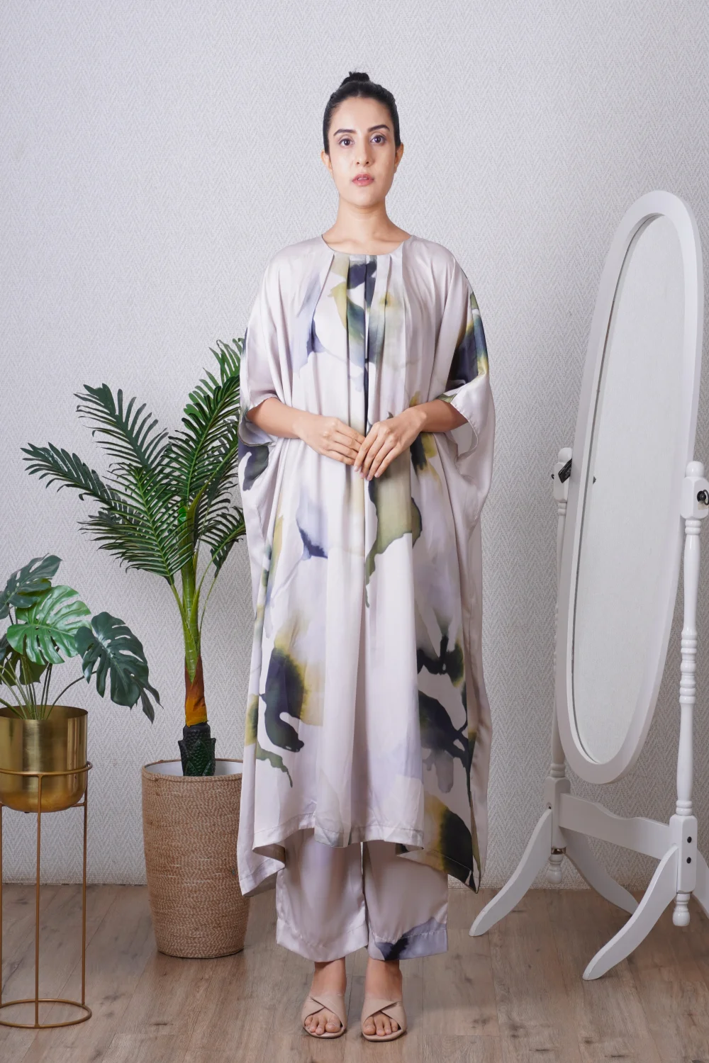 Green Pleated Kaftan Set