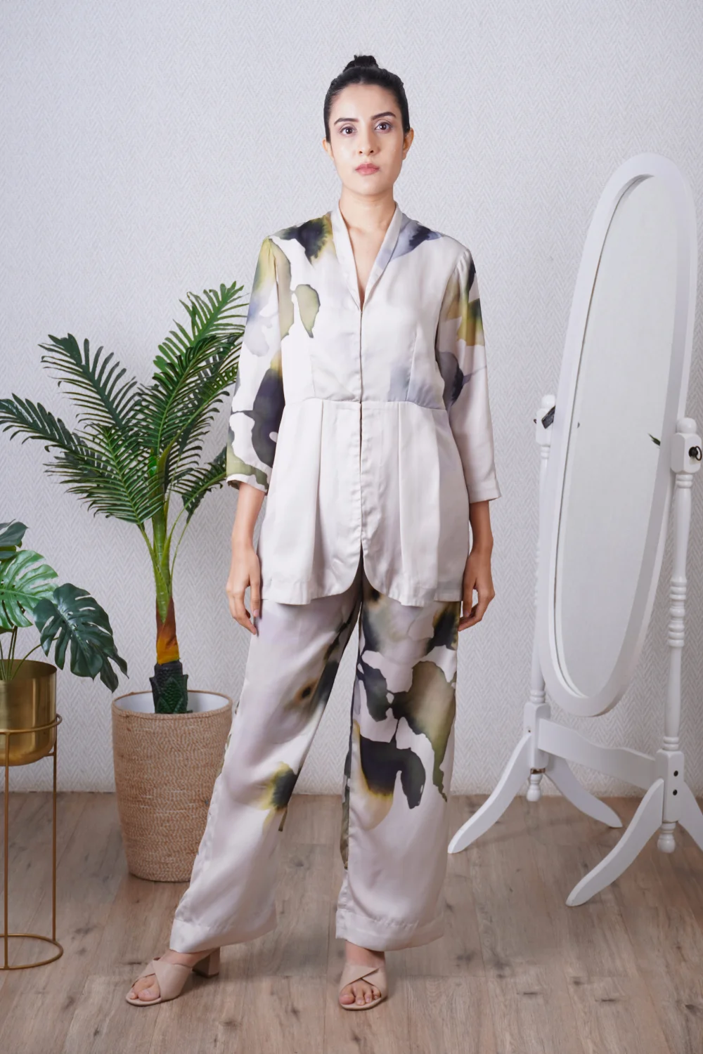 Ivory Overlap Imported Satin Co-ord Set.